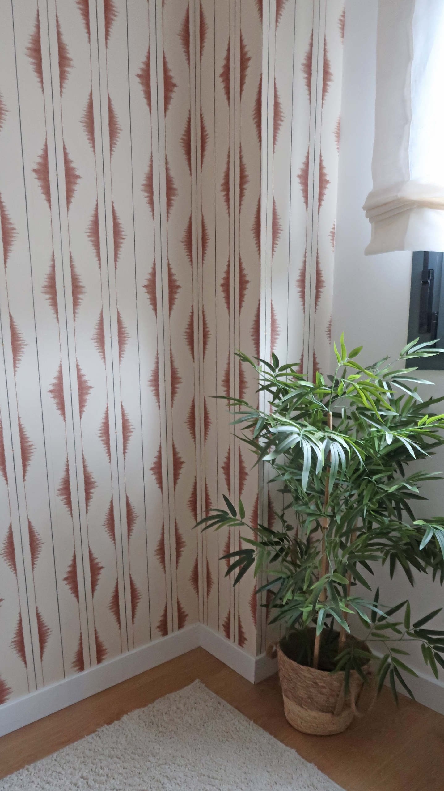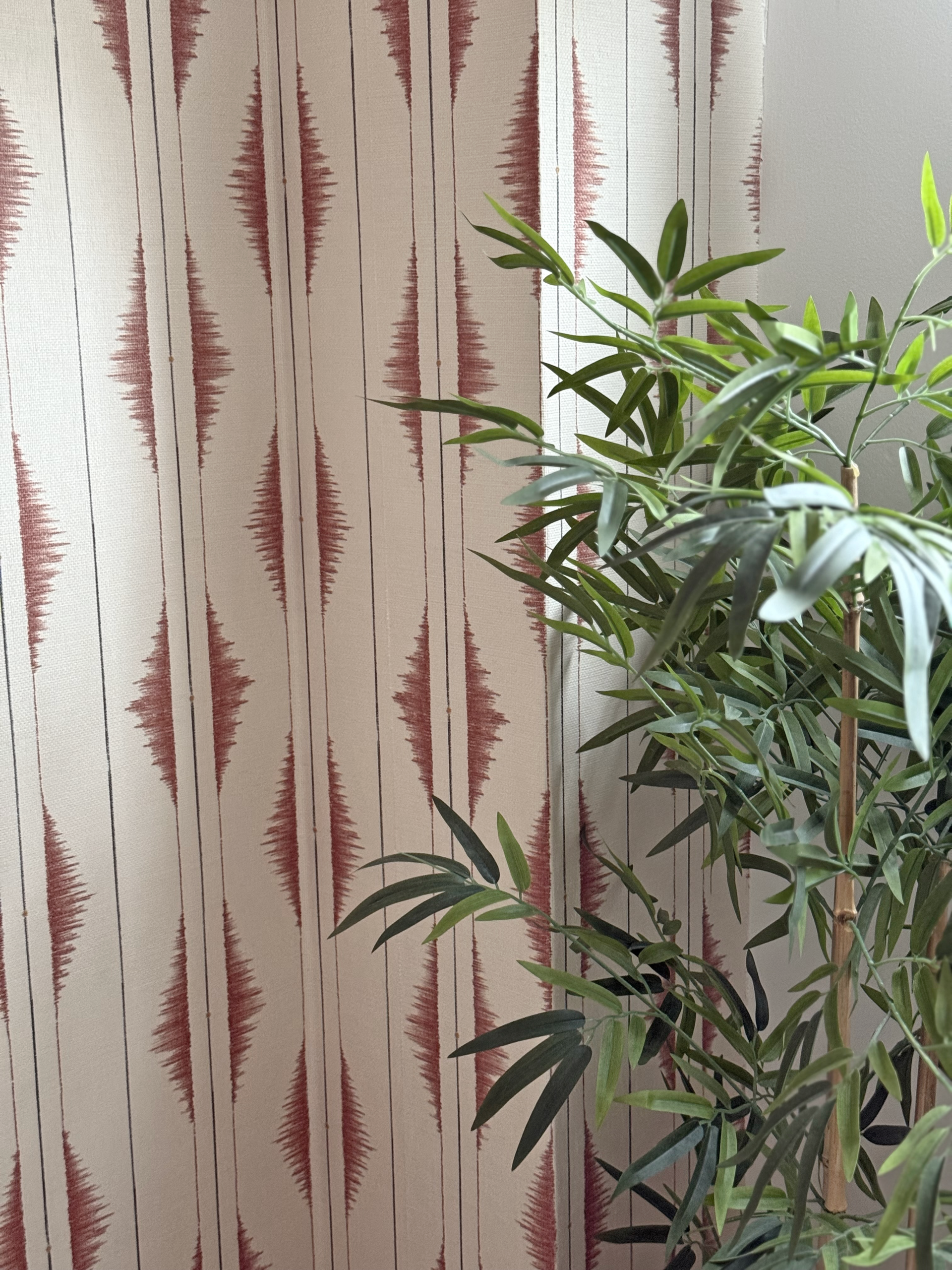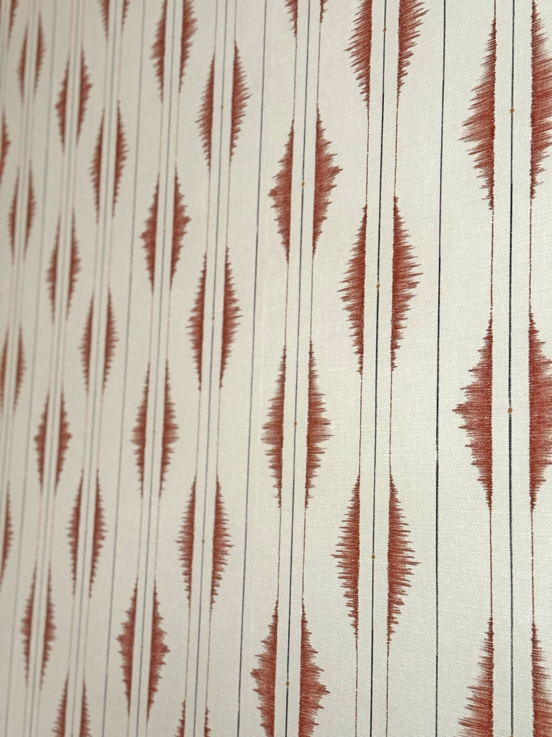 En este proyecto, la elección del diseño fue clave. Opté por un estampado geométrico vertical en tonos terracota,
